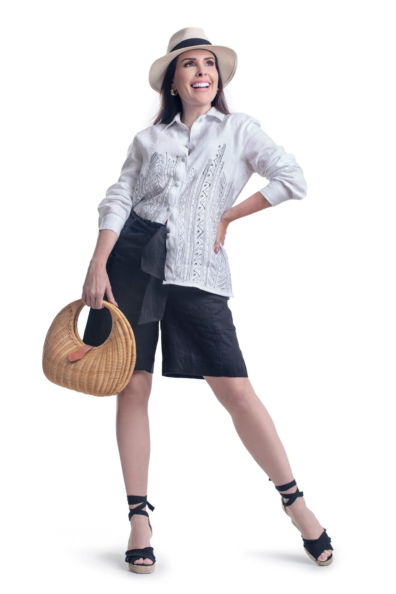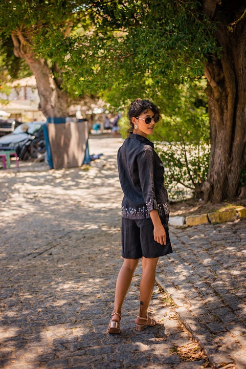 Nossa bermuda Phuket é perfeita tradução da elegância atemporal. Confeccionada em linho 100%, ela é ideal para os dias quentes, trazendo o conforto do frescor natural e a sofisticação de um tecido nobre. Seu design clochard, com ajuste na cintura, confere um caimento único, valorizando a silhueta de forma despretensiosa e moderna, enquanto seu comprimento equilibrado garante liberdade de movimento, fazendo dessa peça uma aliada versátil no seu guarda-roupas. Para um visual casual-chic, combine nossa bermuda com uma camisa de seda leve, que pode ser usada solte ou com um nó despojado na frente. Para um look mais sofisticado, aposte em uma blusa fluida com acessórios minimalistas e finalize com sandálias rasteiras de tiras. Ela é ideal tanto para almoços a beira-mar, quanto para destinos exóticos como resorts e cidades tropicais. Sua versatilidade permite transitar com facilidade entre ambientes mais sofisticados e momentos causais, mantendo você sempre elegante e confortável.
